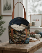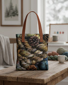 Carry your craft spirit in style with the Urban Tote Bag in Winter Pine. This canvas tote features a stunning double sided photo print of hand dyed yarns and comes fully lined with interior pockets to keep essentials organized. Choose from three vegan leather handle colours, Black, Brown, or Navy for a personalized touch. Custom made to order, it's the perfect everyday bag for yarn lovers and creative souls.