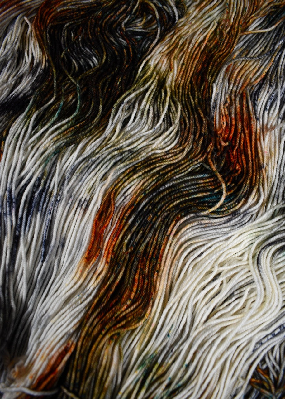 With it's smooth, round, bouncy texture, this hand dyed yarn will showcase intricate cables and other stitches to perfection. Sweaters, cardigans, hats, scarves, socks, wraps, the possibilities are endless for this all purpose, worsted weight yarn.