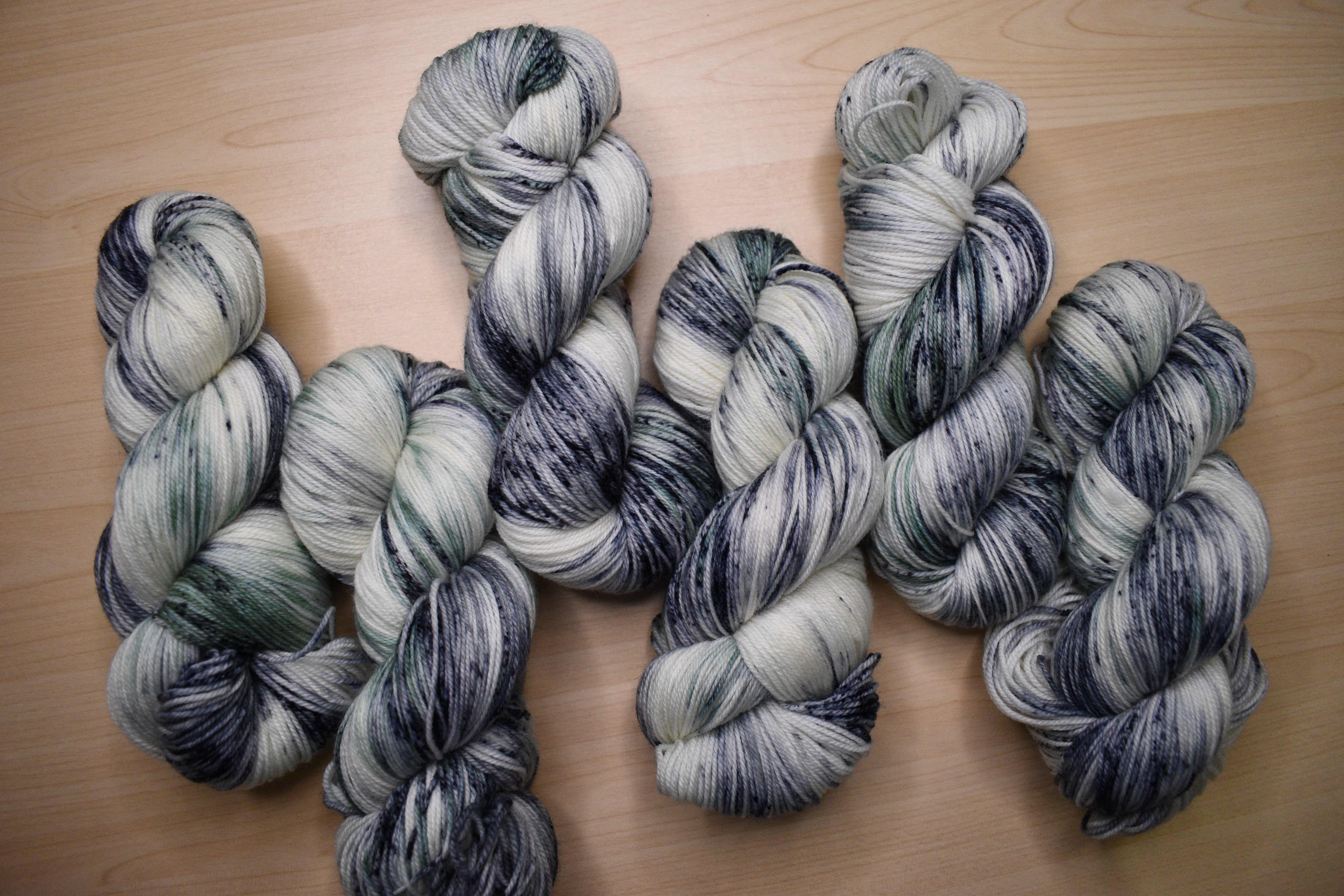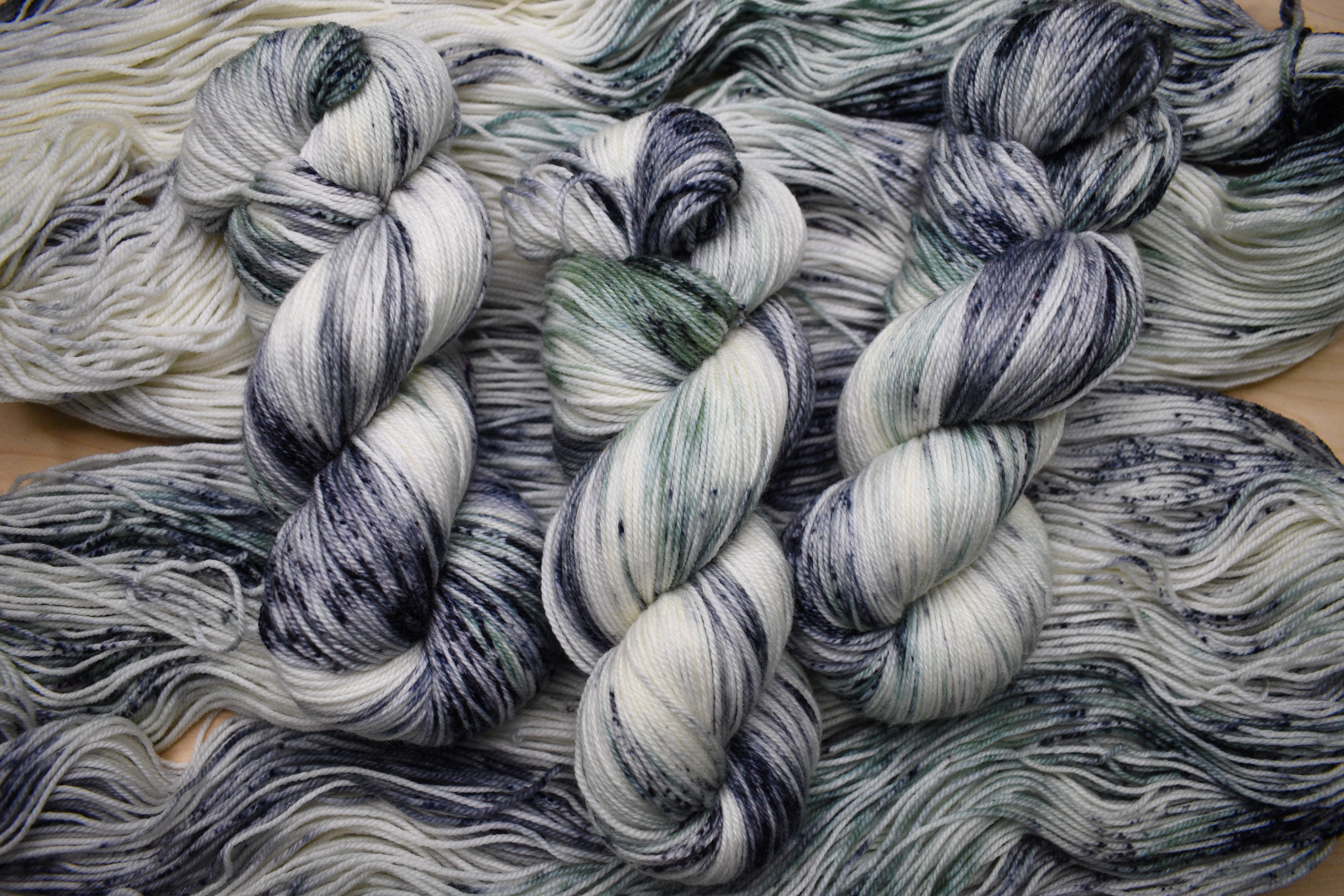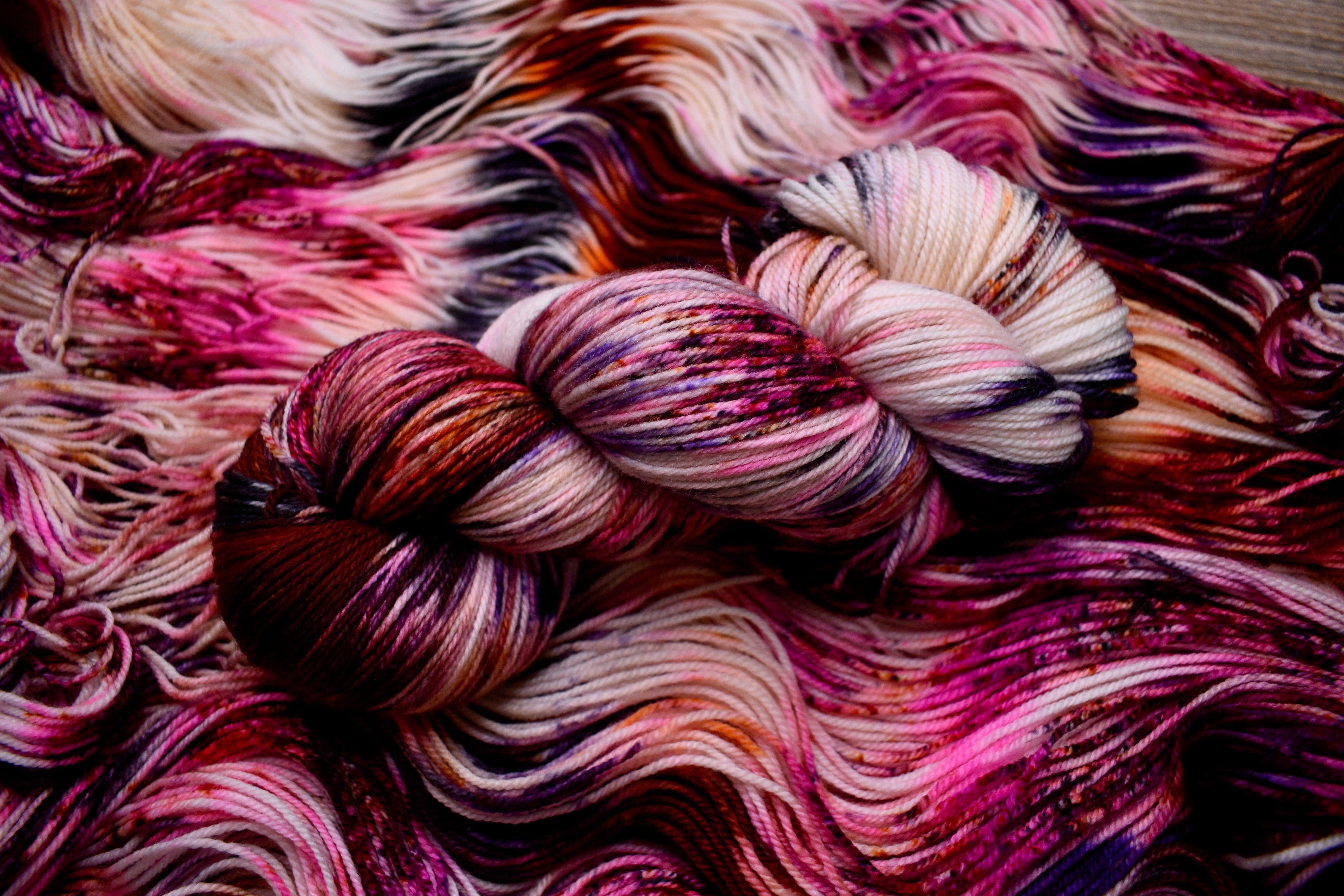 Merino sock yarn in various hand dyed colours.