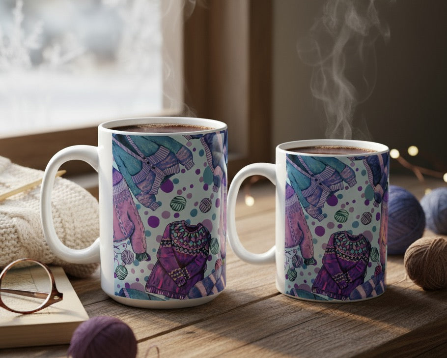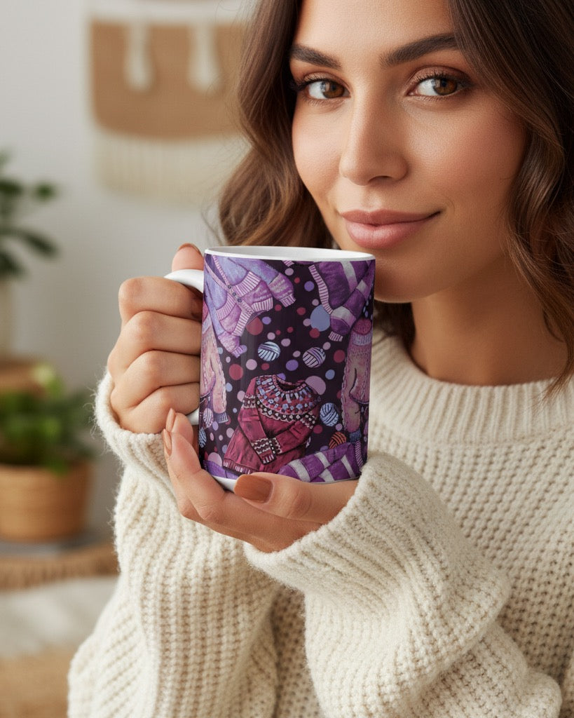 Cozy Sweaters Ceramic Mug (11oz/15oz) - Plum