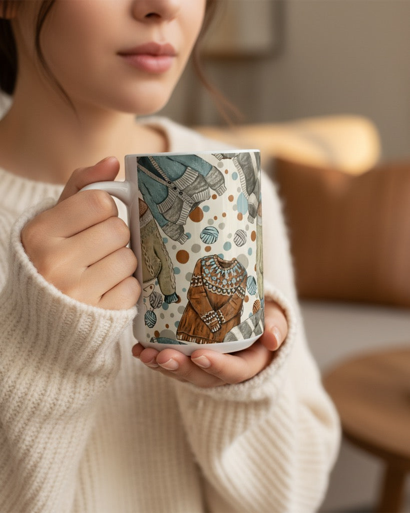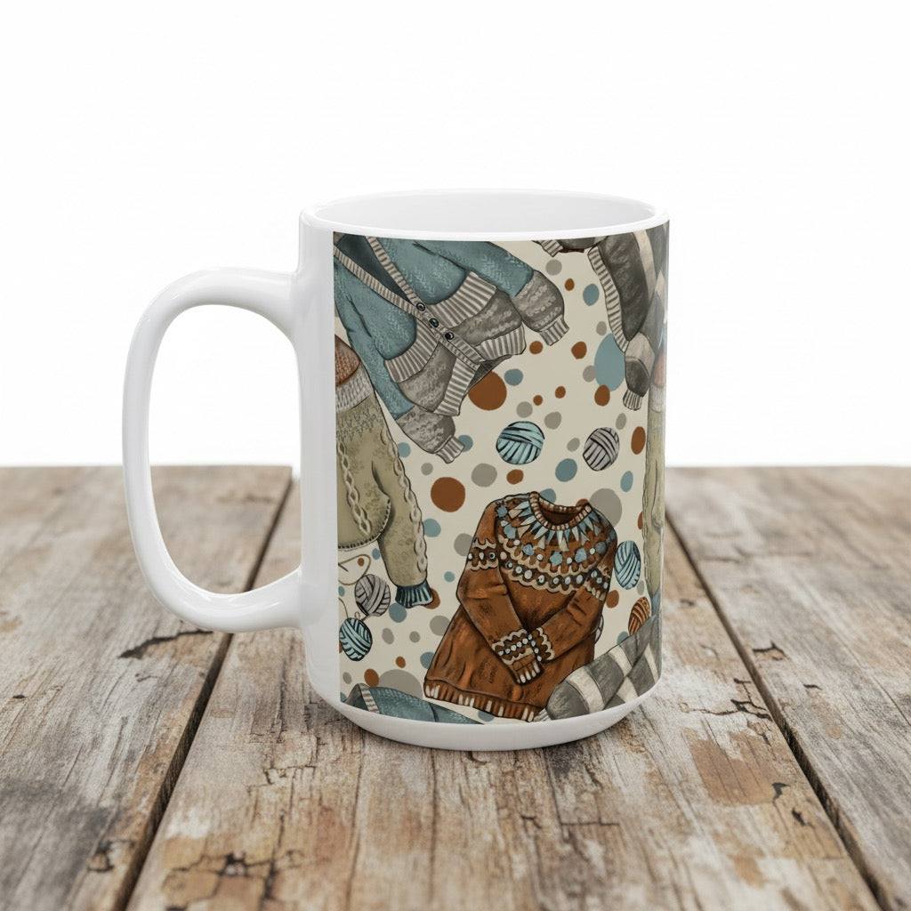 Cozy Sweaters Ceramic Mug, (11oz, 15oz) - Cream