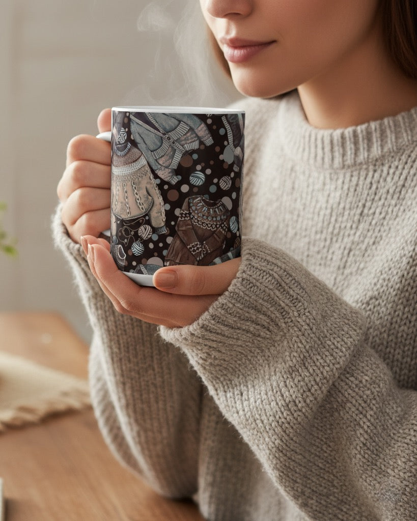 Cozy Sweaters Ceramic Mug (11oz/15oz) - Dark Chocolate