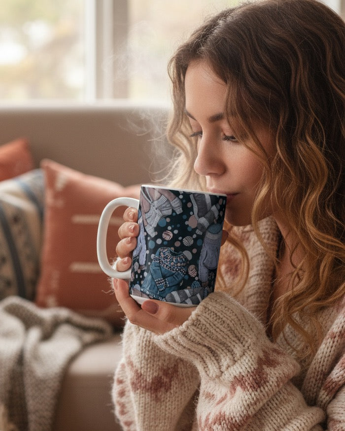 Cozy Sweaters Ceramic Mug (11oz/15oz) - Indigo