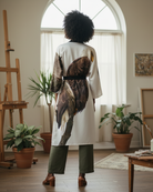 This long kimono peignoir blends comfort with elegant style. Its relaxed fit suits many body types, perfect for lounging or dressing up. This gorgeous kimono is part of a collection that features the photography of my husband and he really captured an amazing moment with this majestic bald eagle. It brings a touch of nature’s beauty to your wardrobe. Available in three luscious fabrics, including ultra luxurious 100% silk. Each piece is made to order and hand-sewn for a personalized touch.