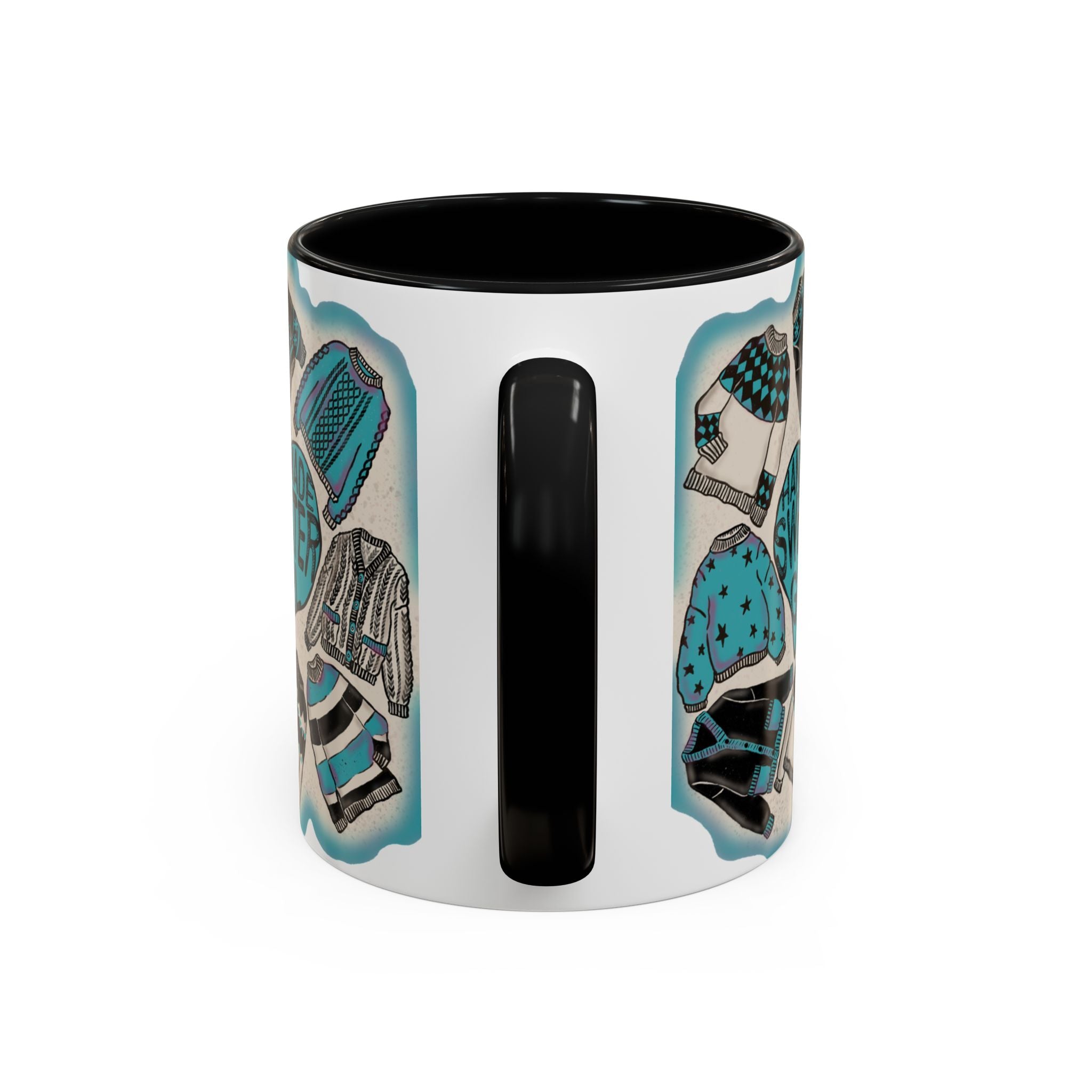 Are handmade items your cup of tea? The Handmade Sweater Girl Accent Mug is just the thing for you! Enjoy the quirky hand drawn designs of colourful sweaters with matching colour accents.