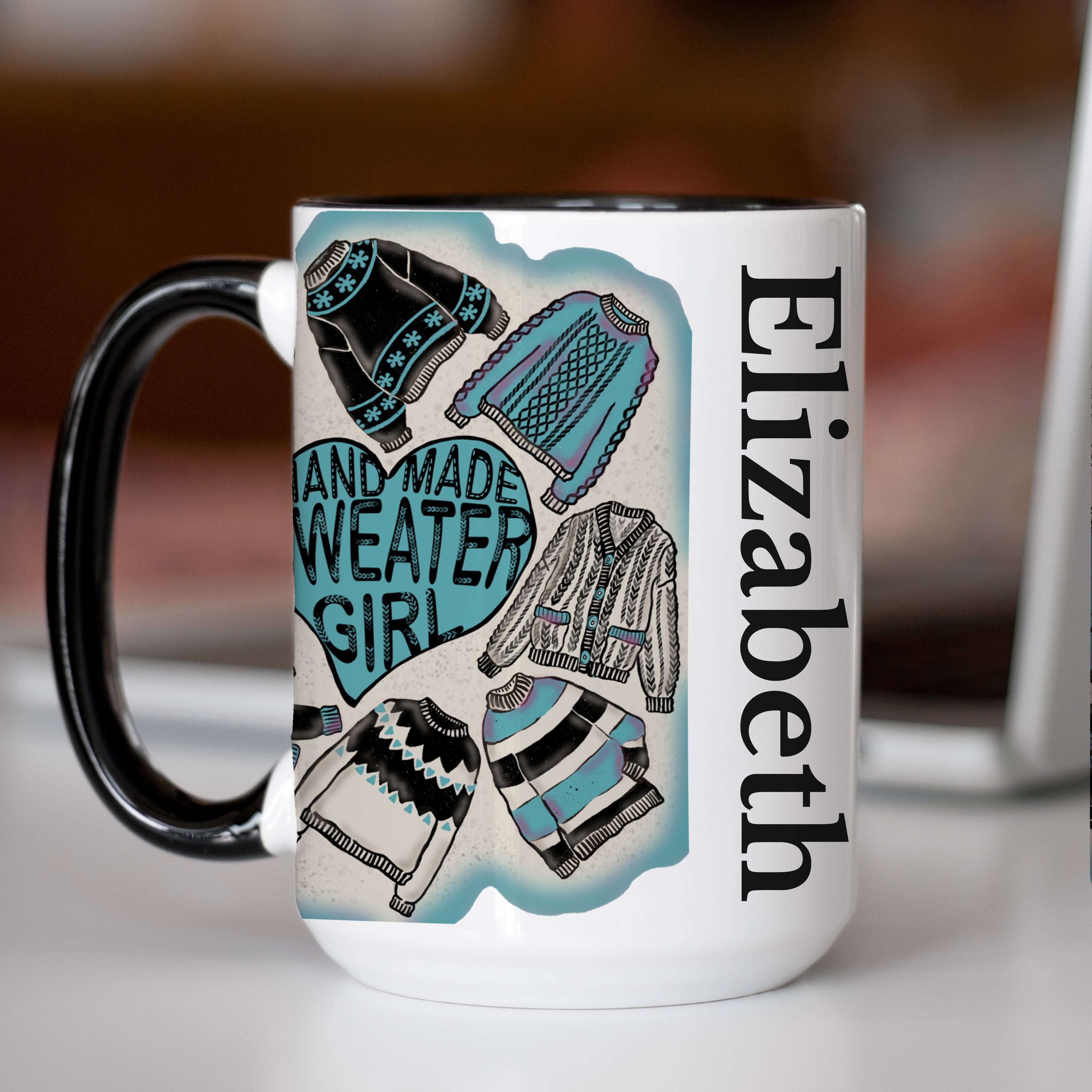 [Personalization] Sweater Girl Accent Mug (11, 15oz) - Turquoise